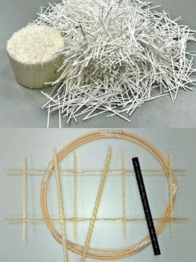 Fibras plásticas (figura superior) y barras GFRP (figura inferior).
